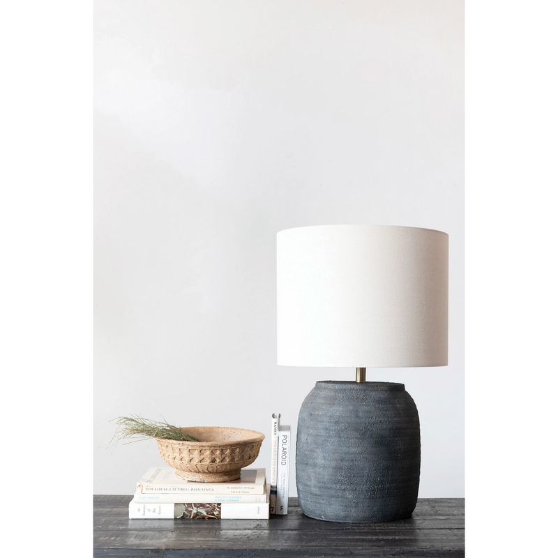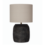 20" Round x 26"H Textured Terra-cotta Table Lamp w/ White Fabric Shade, Black, (100 Watt Bulb Maximum)